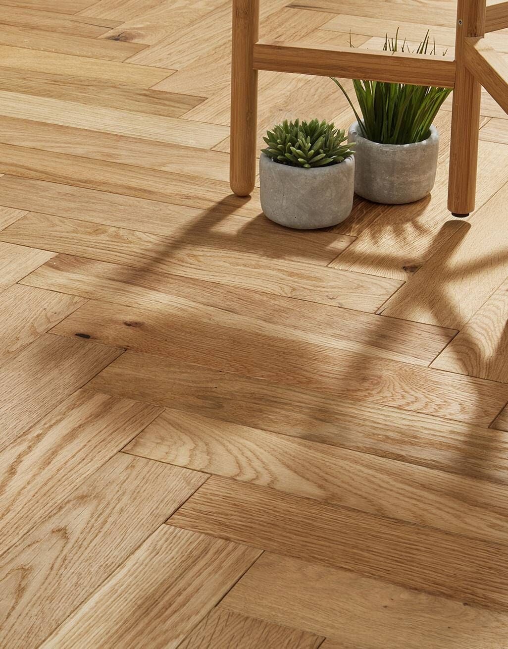 Luxury comes in all shapes and sizes with our range of Engineered Wood flooring. Take a look at our Elegant Herringbone Oak, which will bring a touch of natural charm to many rooms in your home. The classic Herringbone style will create a striking look and is sure to become a conversational piece with your guests. Delicate tones of light brown and cream exude charm and character, whilst the grain detail offers a rustic feel. This Natural Herringbone Oak showcases an authentic wood appearance while also being able to deal with all aspects of a busy home.