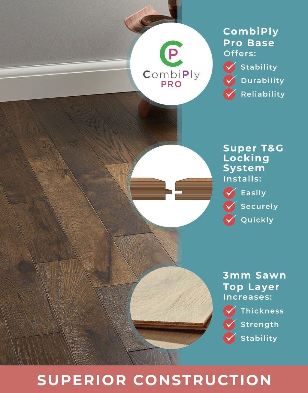 The thickness of your floor is important in ensuring your floor is both stable and highly durable. With a 14mm thickness, you can be safe in the knowledge that your new floor will stand the test of time.