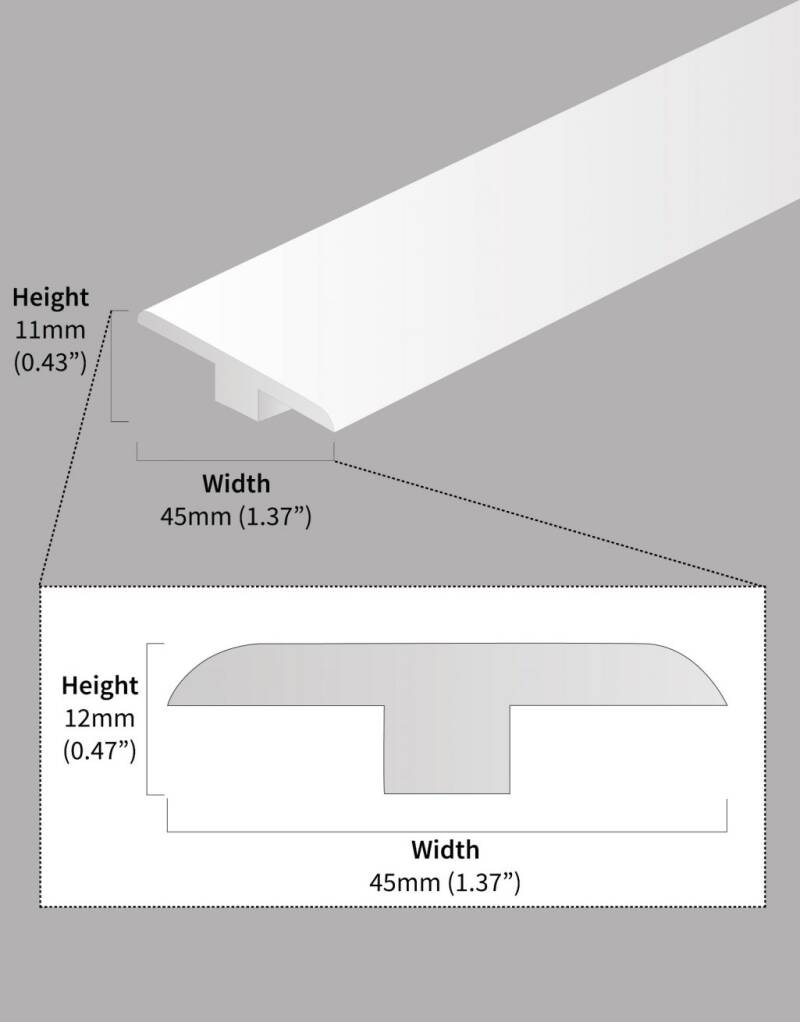 Our FC58 T-Profile measures 0.9m and allows slight imperfections in joints and cuts to be hidden. In addition to this, the profile enables a gap between floor finishes to be incorporated during installation to allow for natural expansion in flooring materials such as ceramics and wood. The T Profile should be used when both levels are of the same height. If the levels vary you should consider using a Ramp Profile.