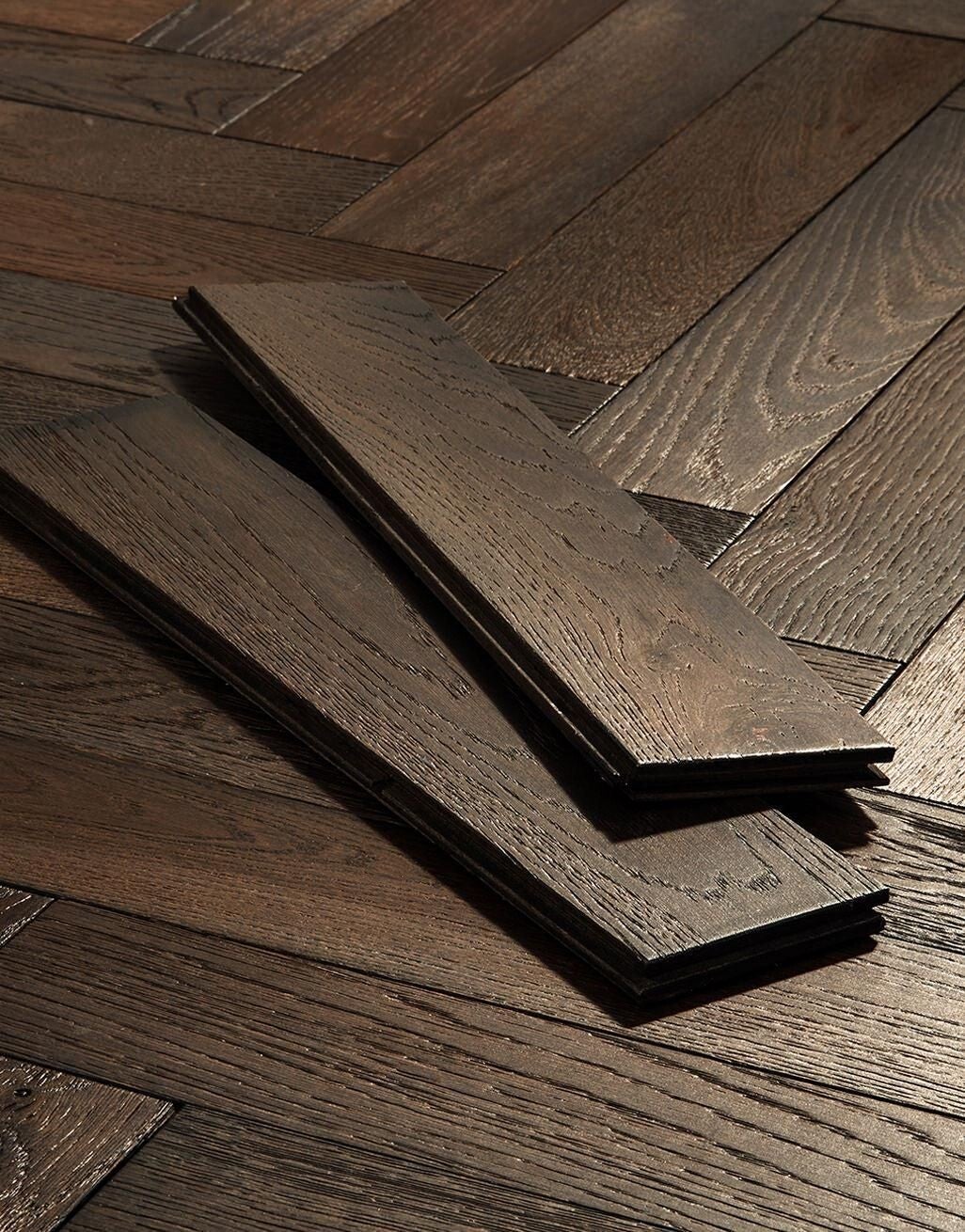 Oxford Herringbone Vintage Oak blends subtle smoky undertones with deep dark chocolate shades, creating a sophisticated, rich atmosphere. The cool, smoky hints add depth and contrast to the warm, chocolate tones, resulting in a beautifully balanced and refined look. Brushed and lacquered engineered wood flooring offers durability, easy maintenance, and a stylish appearance. The brushed texture adds a natural, authentic look while hiding scratches, and the lacquer finish provides a protective layer against stains, moisture, and wear. This combination makes the flooring more durable than other finishes, resistant to scratches, and easy to clean. Rustic grade engineered wood flooring features natural variations in grain, knots, and color, giving it a warm, earthy look with plenty of character. Ideal for those seeking an authentic, organic feel, it adds charm and depth to rustic, farmhouse, or traditional interiors. The unique imperfections enhance the wood’s natural beauty and individuality.