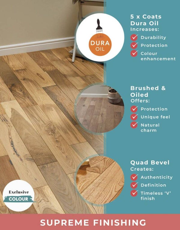 Enjoy the beauty and natural texture of your floor for longer with our enhanced oiled coating. Finished with five individual coats of Dura oil, your floor will be highly durable and feature enhanced colour that really brings out the signature wooden grains.