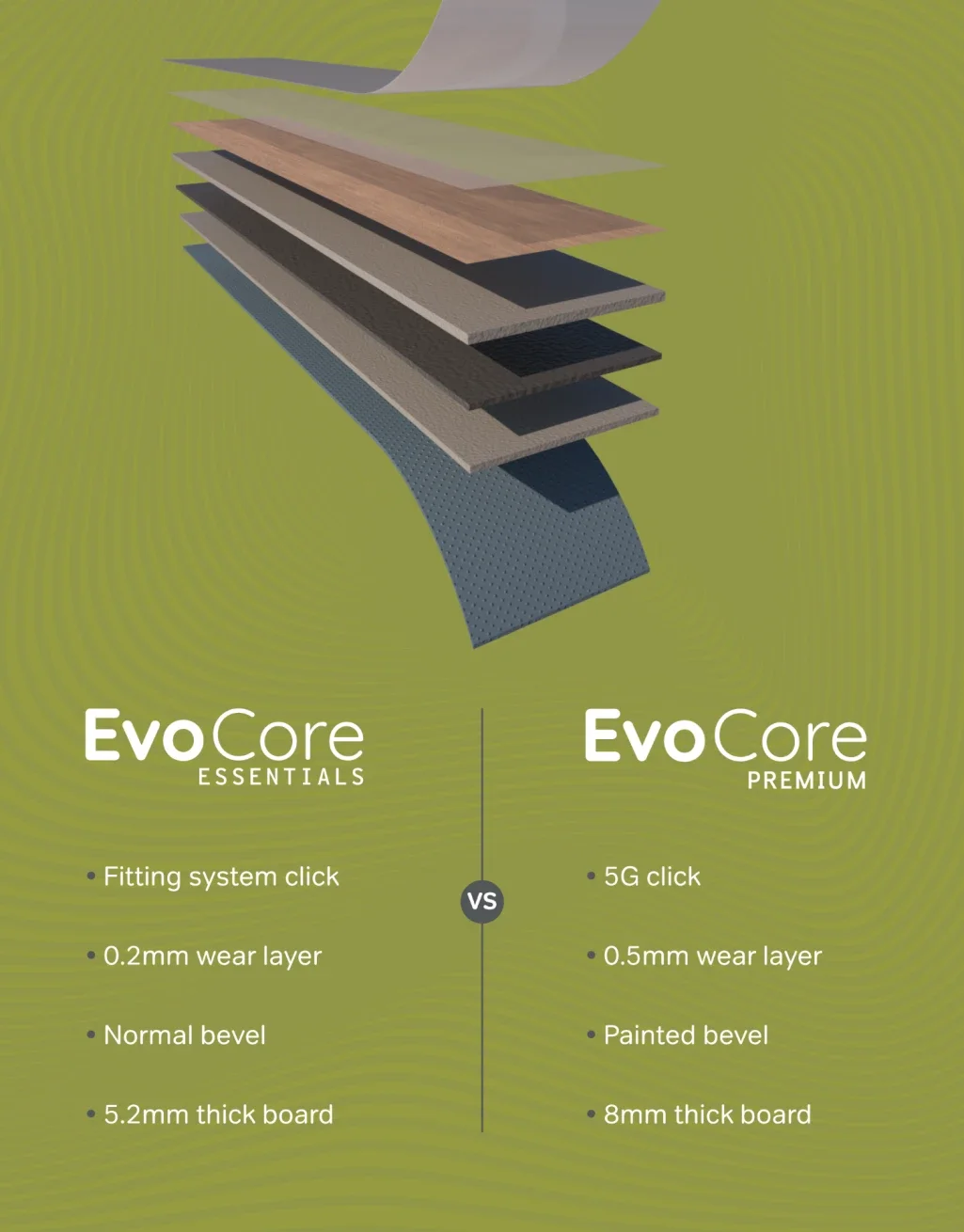 The EvoCore range is fitted with pre-applied 1.5mm foam cushioned underlay resulting in advanced noise reduction and what’s even better, there is no need to purchase underlay separately!