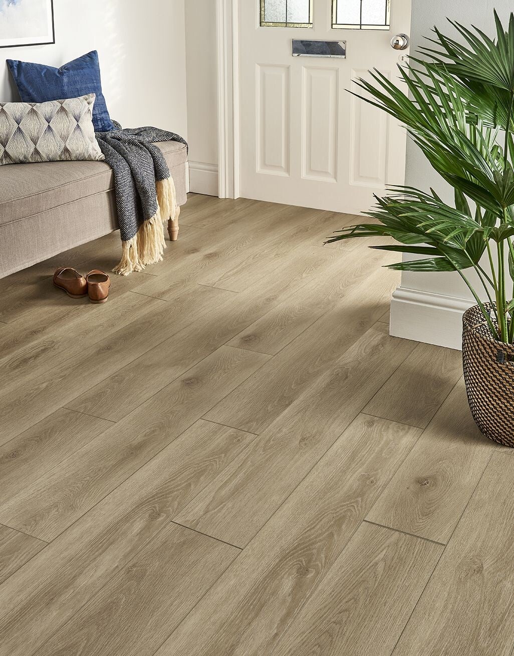 EvoCore Premium Sahara Oak blends classic oak grain with soft sand and beige tones, creating a versatile finish that suits both traditional and modern interiors. With 7-layer construction, 8mm thickness, and a 0.5mm wear layer, it’s built to handle everyday wear—even in high-traffic areas. The integrated underlay adds comfort and sound insulation, while the anti-scratch coating keeps floors pristine against pets and heels. Its waterproof 5G Click-Lock system ensures quick, easy installation—ideal for kitchens and bathrooms. Anti-slip boards and a painted bevel enhance safety and luxury. Backed by a generous warranty, EvoCore Premium delivers durability without compromising design. Optional enhanced cover available for extended protection.
